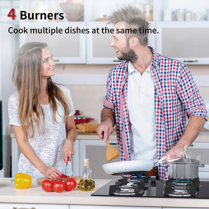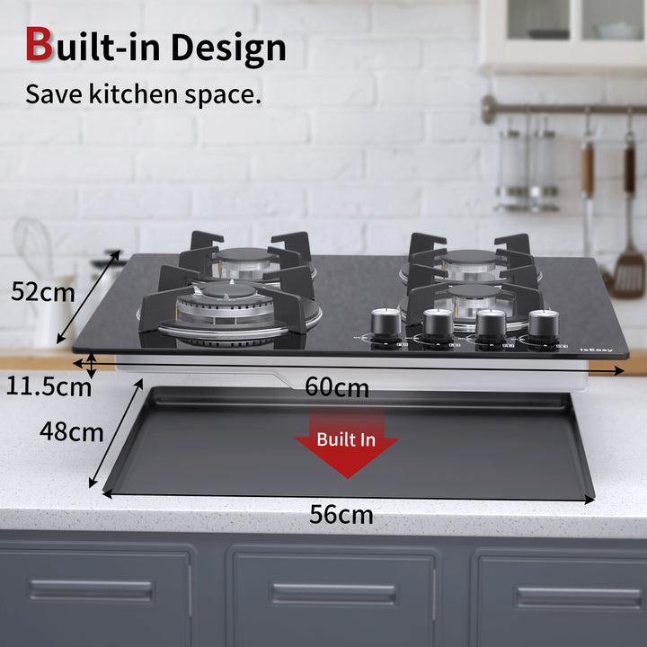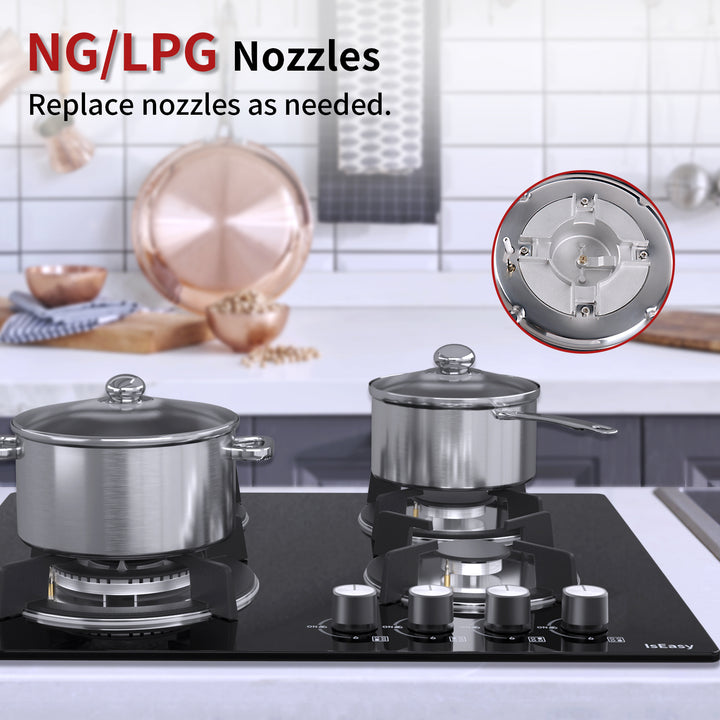 IsEasy 4-Burner Built-in Gas Hob, 24", 7800W, NG/Propane Convertible, Automatic Thermocouple Protection